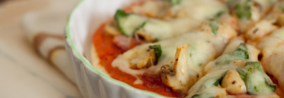 INGREDIENTES 1 base de pizza Sem Glúten 3 tomates bem maduros 1 cebola grande 3 dentes d’alho 200g queijo mozzarella ralado 250g cogumelos laminados 200g bacon Agrião q.b. 1 c.chá orégãos alho em pó q.b. Preço médio: 3.60€ p/ 4 fatias Comece por preparar…